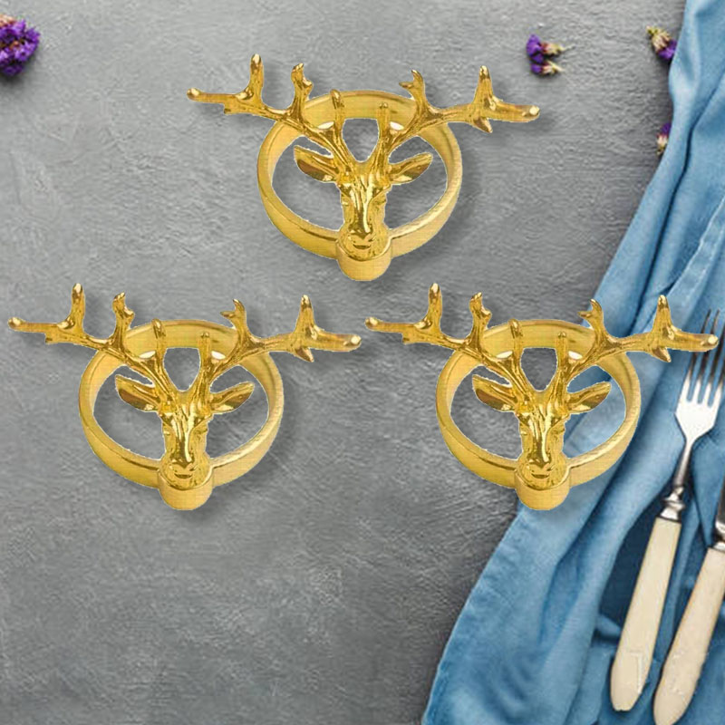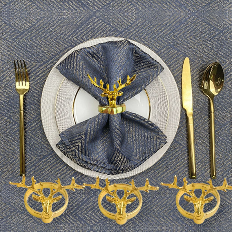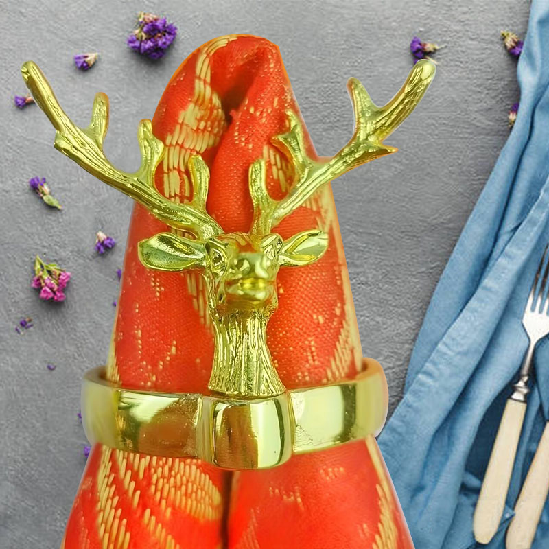 Christmas Creative Western Food Napkin Ring Golden Deer Head Napkin Ring Reusable