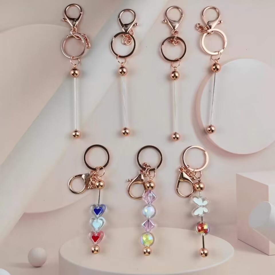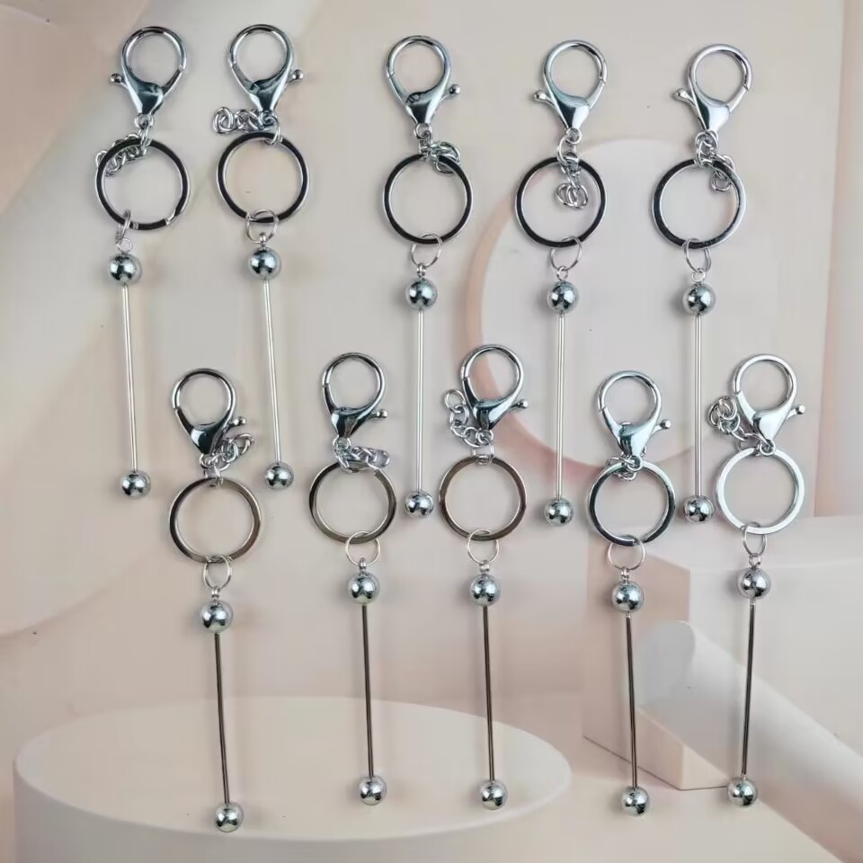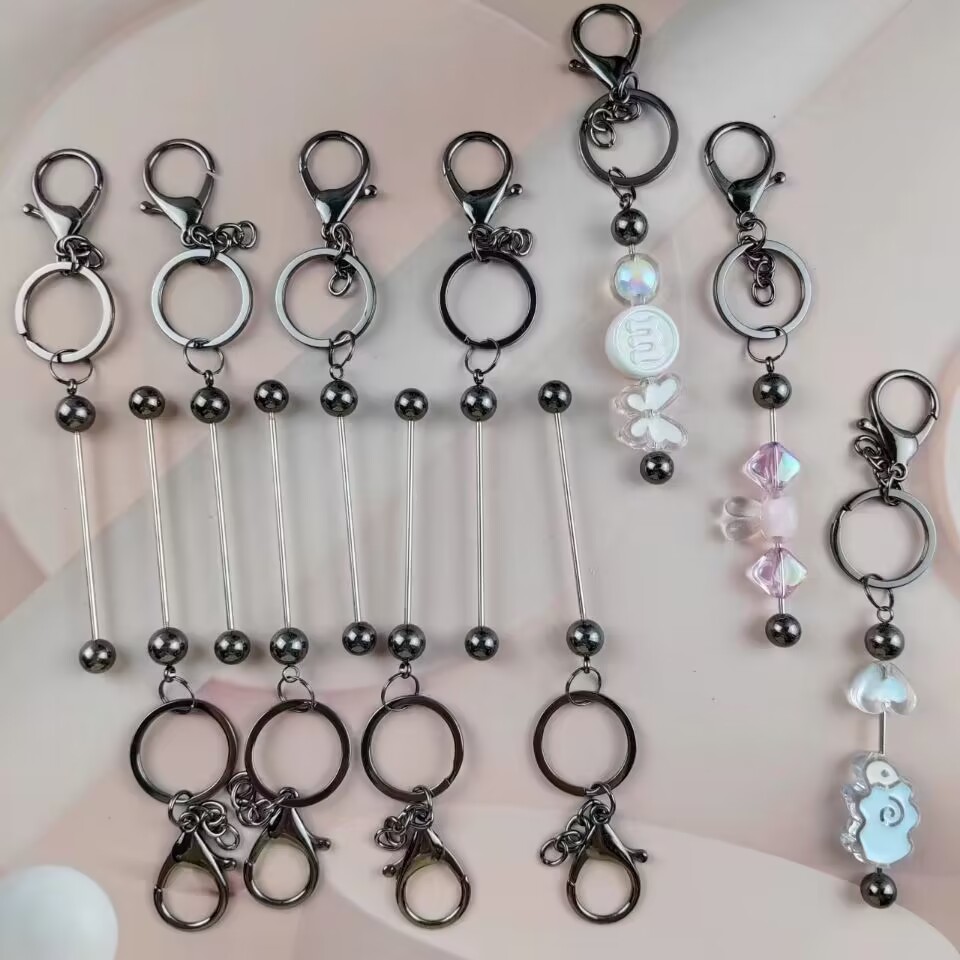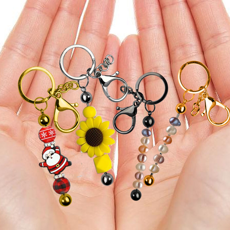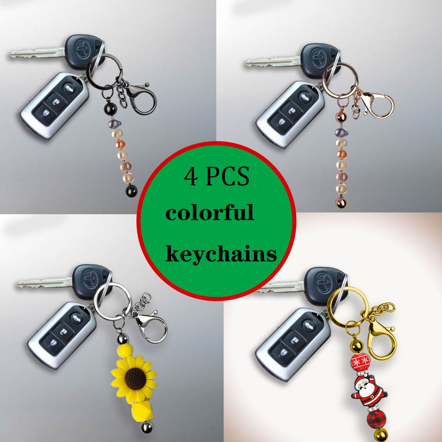 Beaded corlorful Keychain Stainless Steel Lobster Clasp Key Chain Ring Purse Bag Backpack Charm Jewelry Making Craft Accessory Women Girls Gift