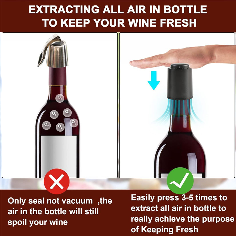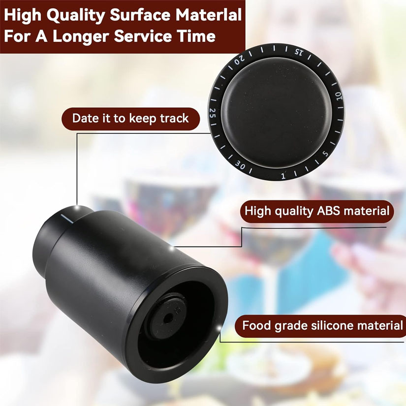 Vacuum Wine Bottle Stoppers ,Reusable Wine Preserver with Time Scale Record,Wine Corks Savers Vacuum Pump Corks with button Operation, 100% Leak Proof Seal Keep Wine Fresh,Best Gifts Accessories for