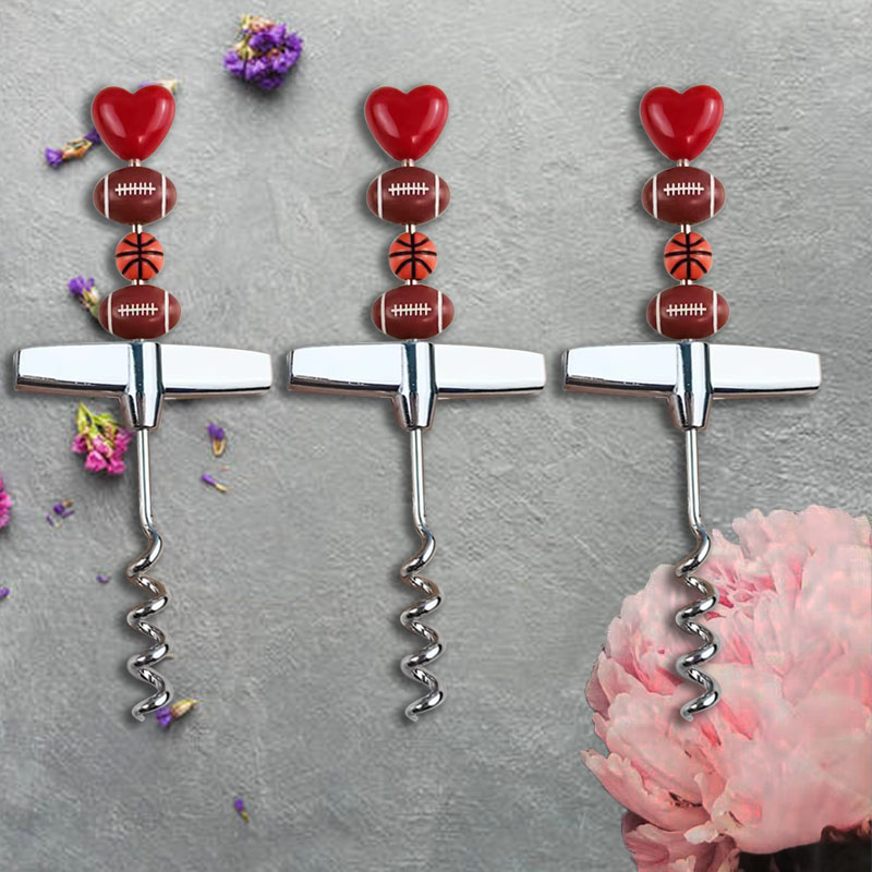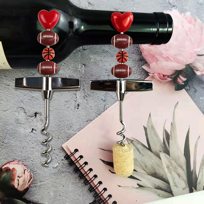 Valentine's Day, Spring Festival, Super Bowl, Popular and Creative DIY Beaded Red Wine with Thread Bottle Opener, Holiday Party Bottle Opener, Includes Beaded Basketball and Rugby